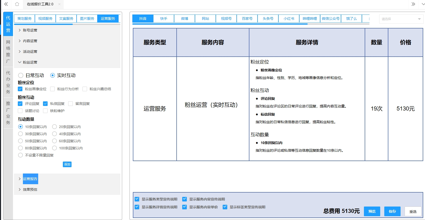 值得一提的是,巨推传媒还自主研发了一个名为巨推管家的报价系统。这在快手企业号代运营业内可是独一份!只有在这个行业深耕多年,才能真正理解客户的需求,进而研发出如此贴合实际的报价系统。巨推管家能够根据客户提供的具体信息,快速生成一份详尽的报价单,既避免了服务商“见人下菜碟”的弊端,又确保了报价的客观性和公正性。